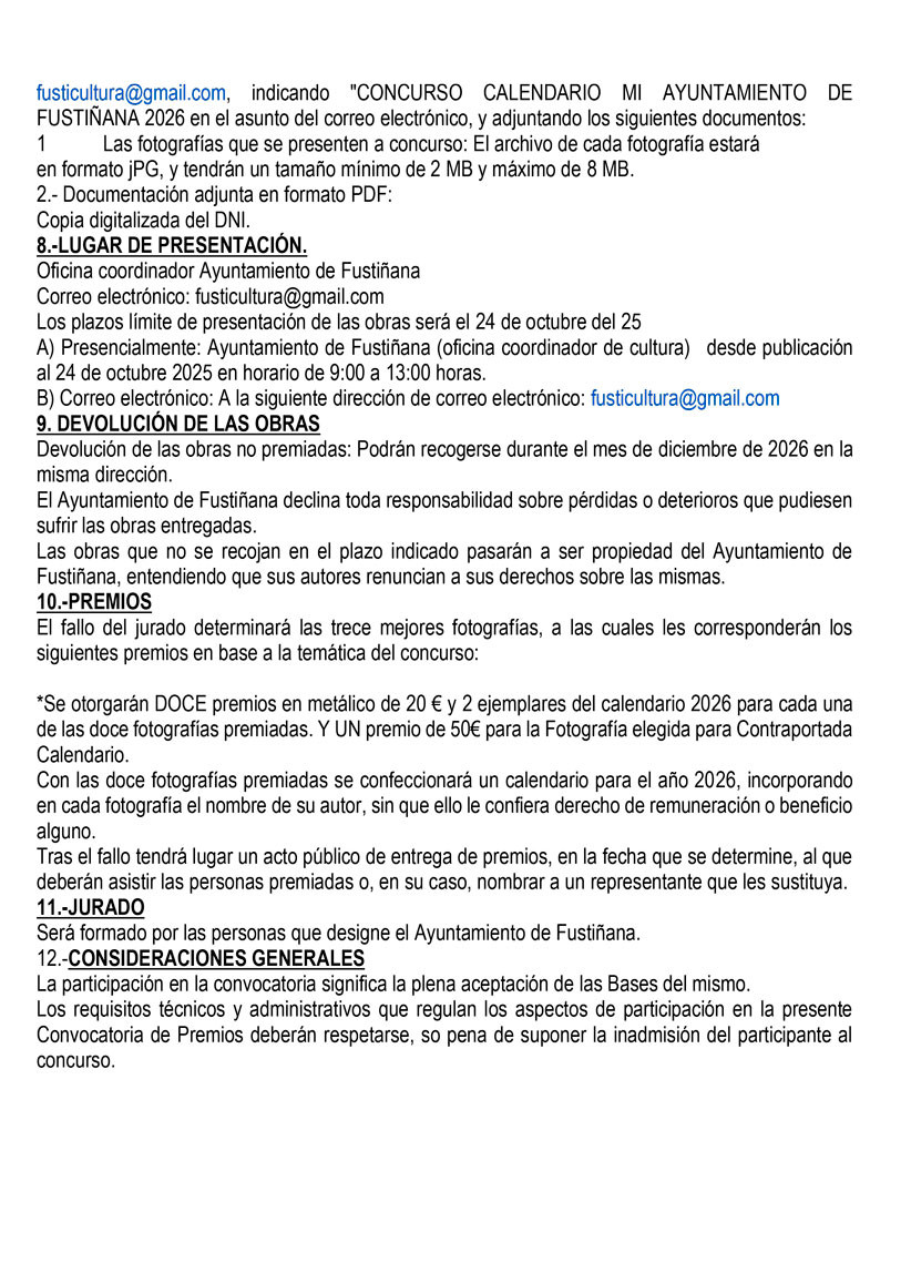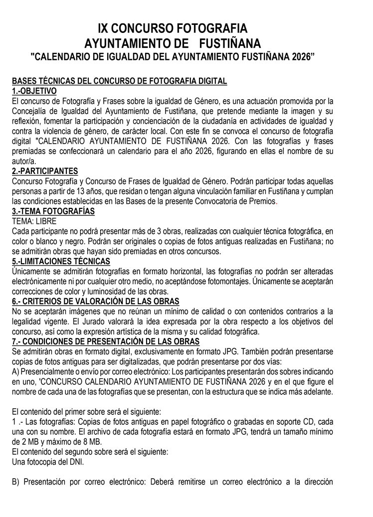 Presentación de obras hasta el viernes 24 de octubre. Lugar: Ayuntamiento o fusticultura@gmail.com Bases en documentos adjuntos.