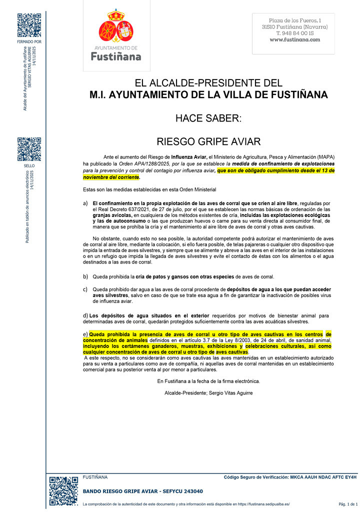 Obligatorio cumplimiento desde el 13 de noviembre de 2025. Más información en Bando adjunto.