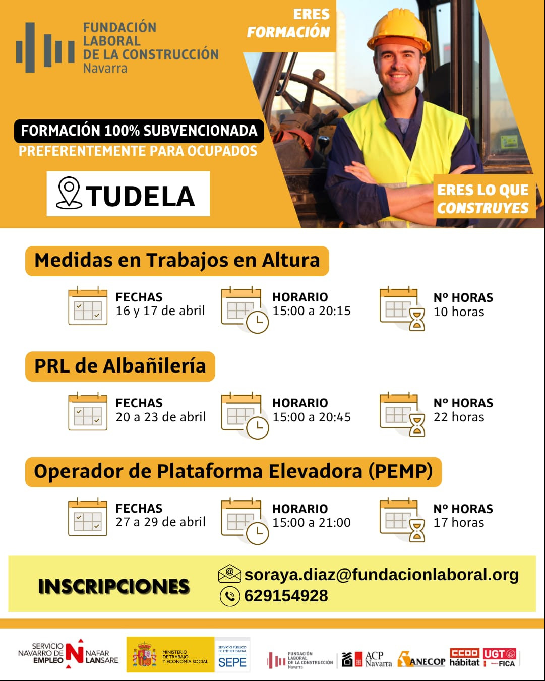 Para inscribirse contactar a través del correo soraya.diaz@fundacionlaboral.org o el teléfono 629 154 928