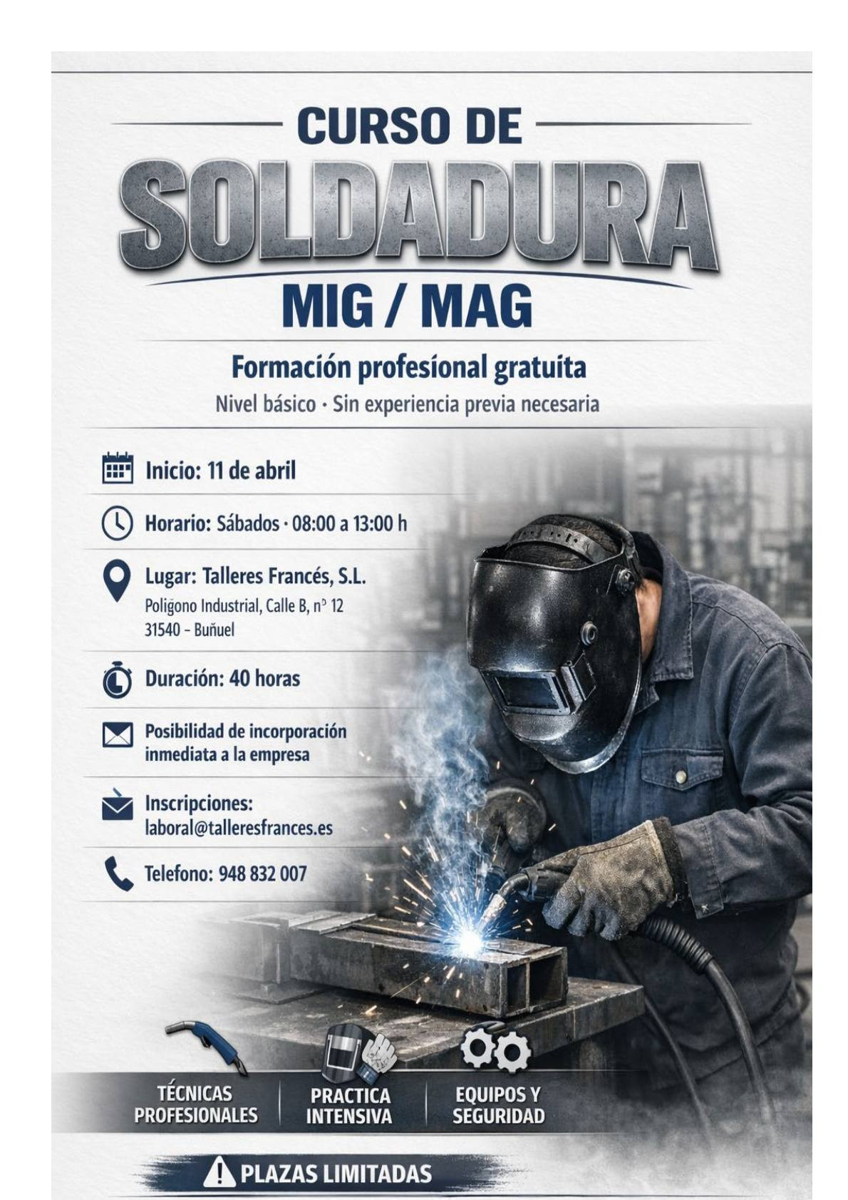 Formación profesional gratuita de nivel básico sin experiencia previa necesaria. Incluye posibilidad de incorporación inmediata a la empresa. Plazas limitadas Más información en cartel adjunto.