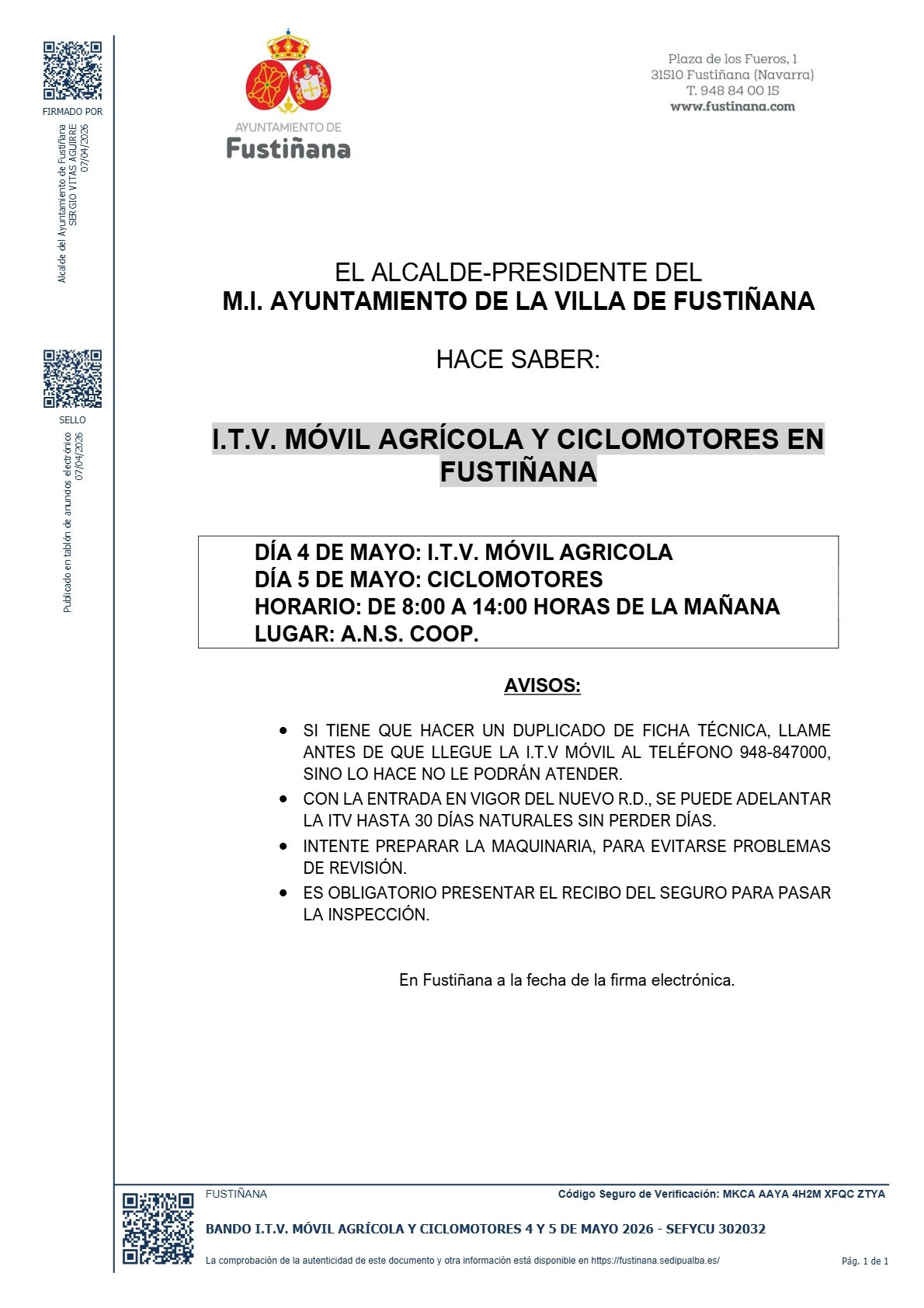 Lunes 4 de mayo - ITV Móvil Agrícola